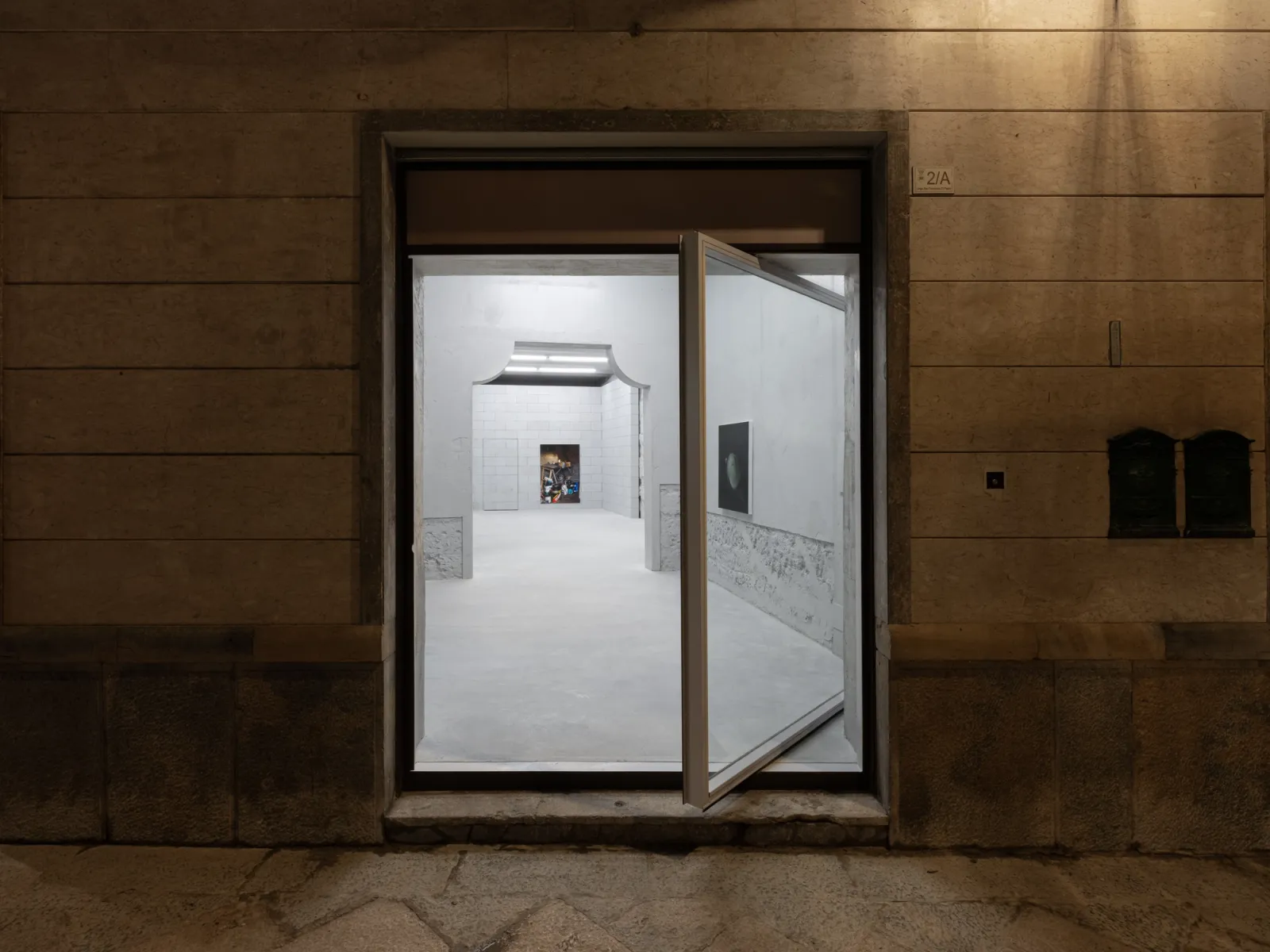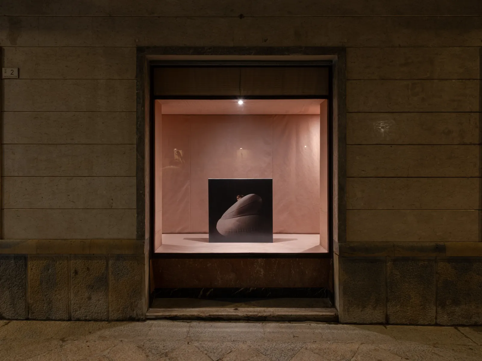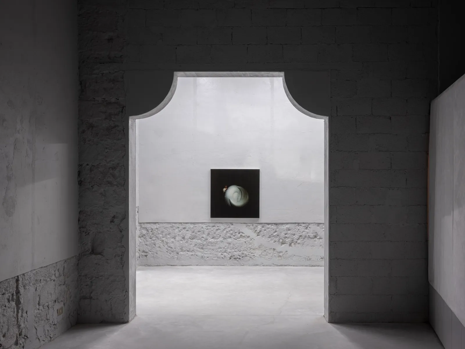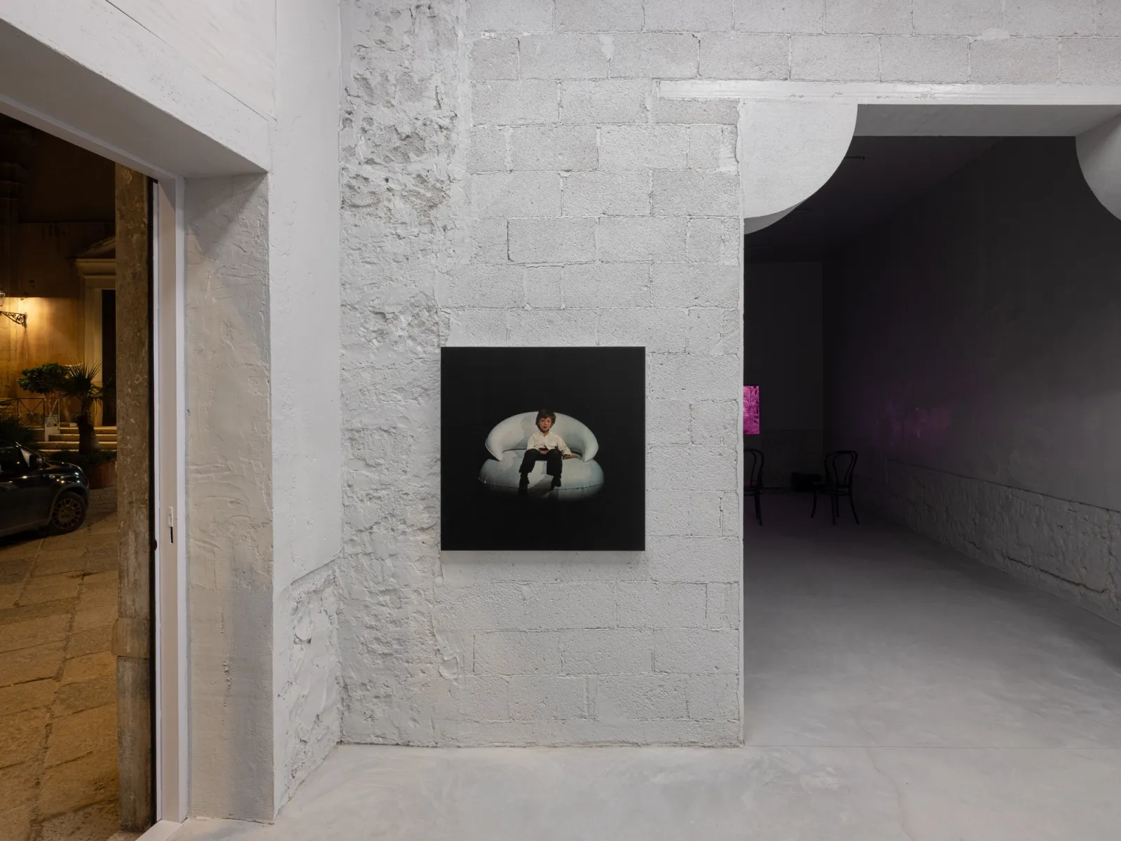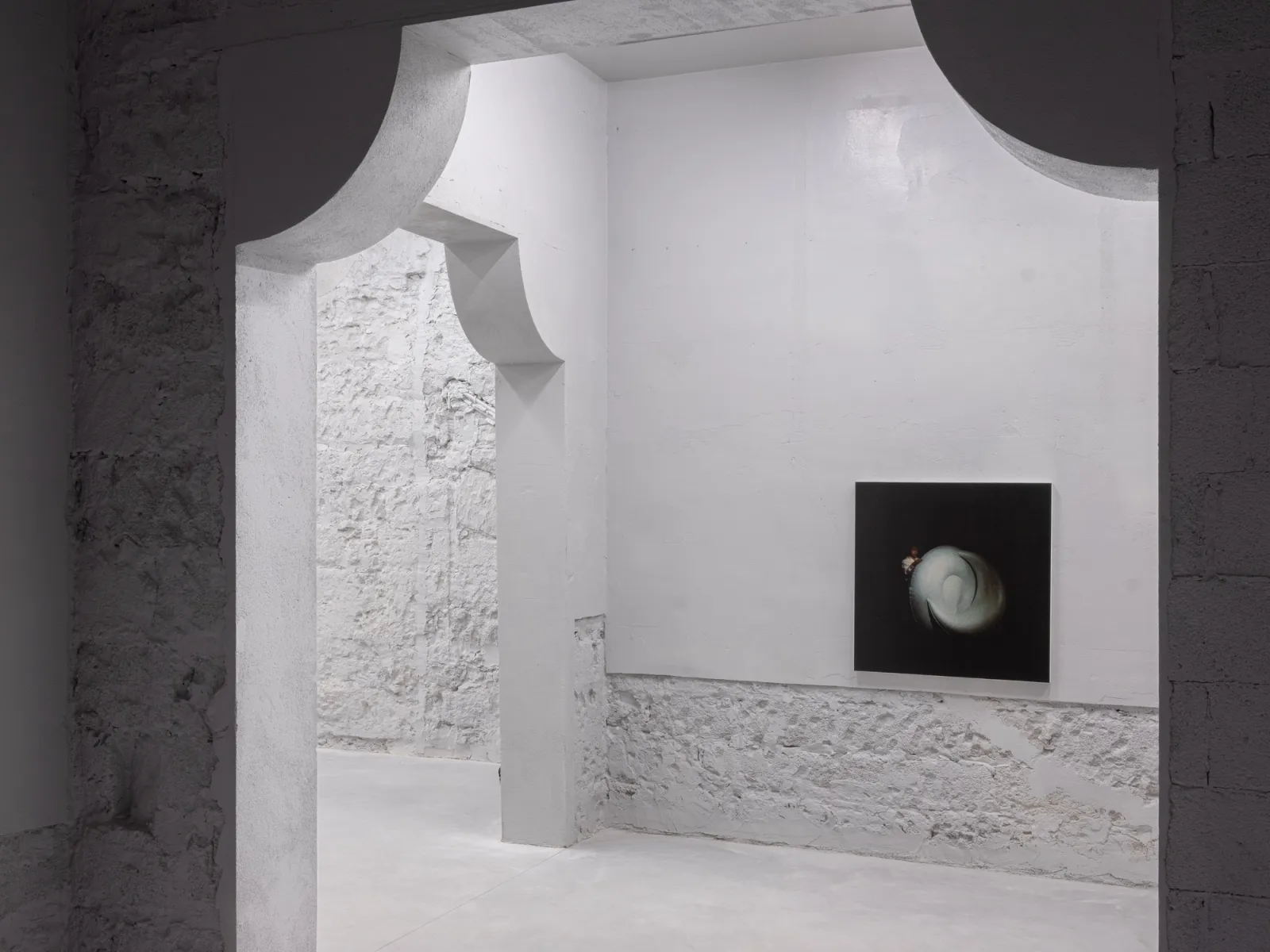 Installed throughout the show, Cho’s recent series, After Giorgio Casali I-II-III (all 2025), reproduces photographer Giorgio Casali’s images of an inflatable chair designed by Bernard Quentin that were originally published in an issue of Domus magazine from the 1960s. The artist enlarged three images to a scale that makes their registration visible, which he then printed on linen and coated in lacquer – a sealant that is used to protect surfaces. Applied here, it solidifies an image that had already appeared in print media, reintegrating it back into the physical world. Across his practice, photography meets other forms, such as painting, sculpture, architecture and design; the artist making fresh use of it in an inattentive present where images feed the camera’s eye.