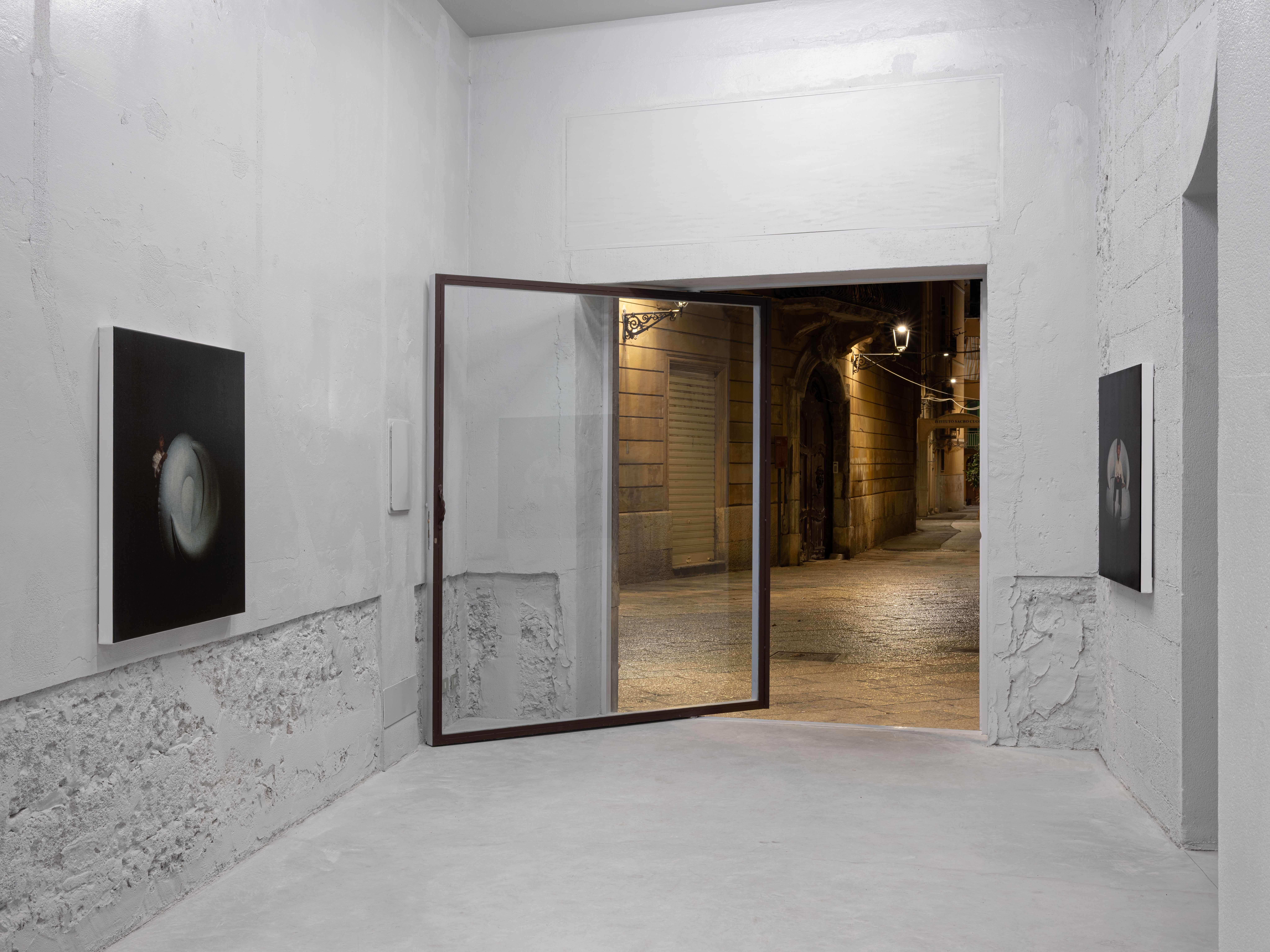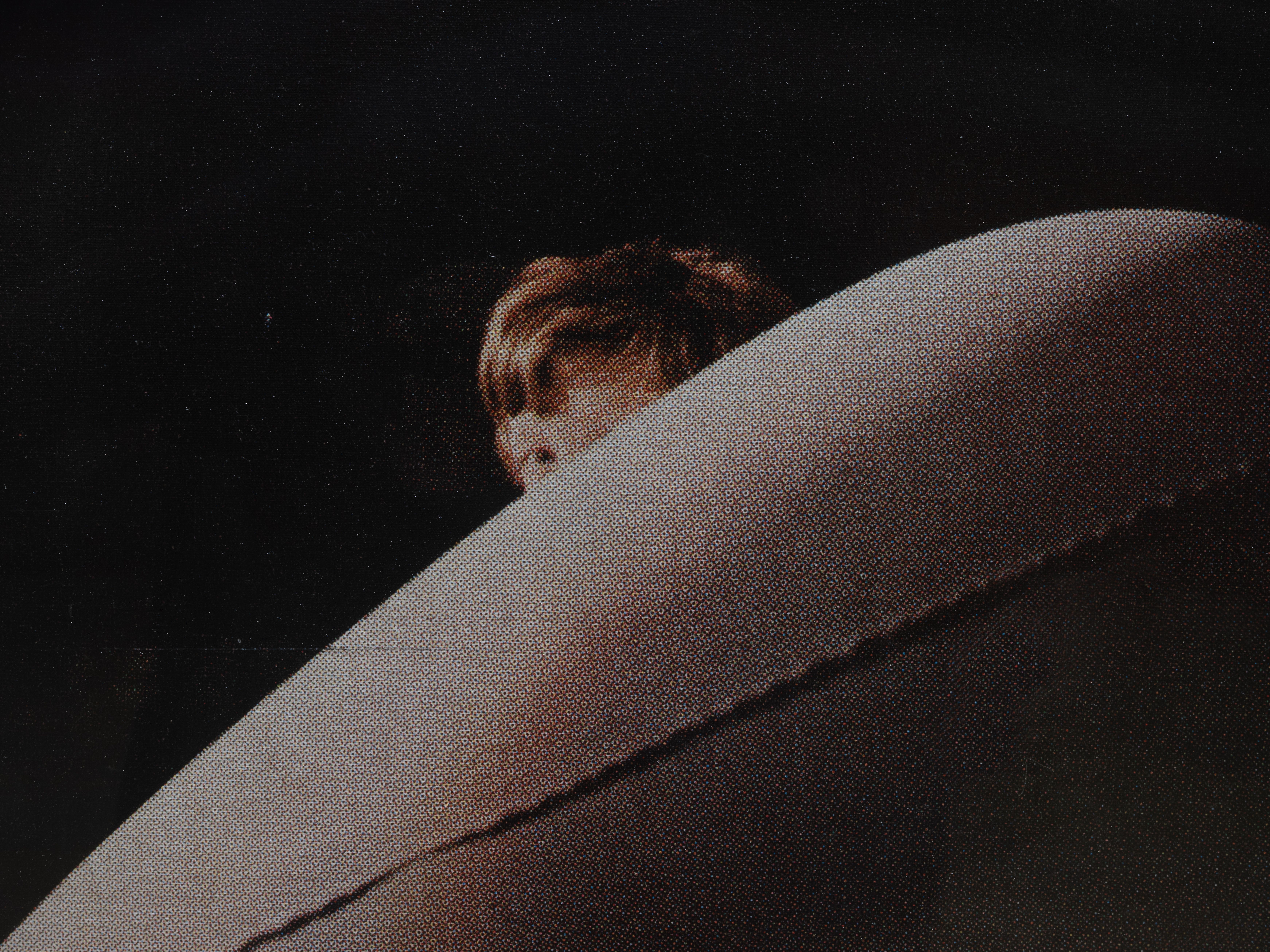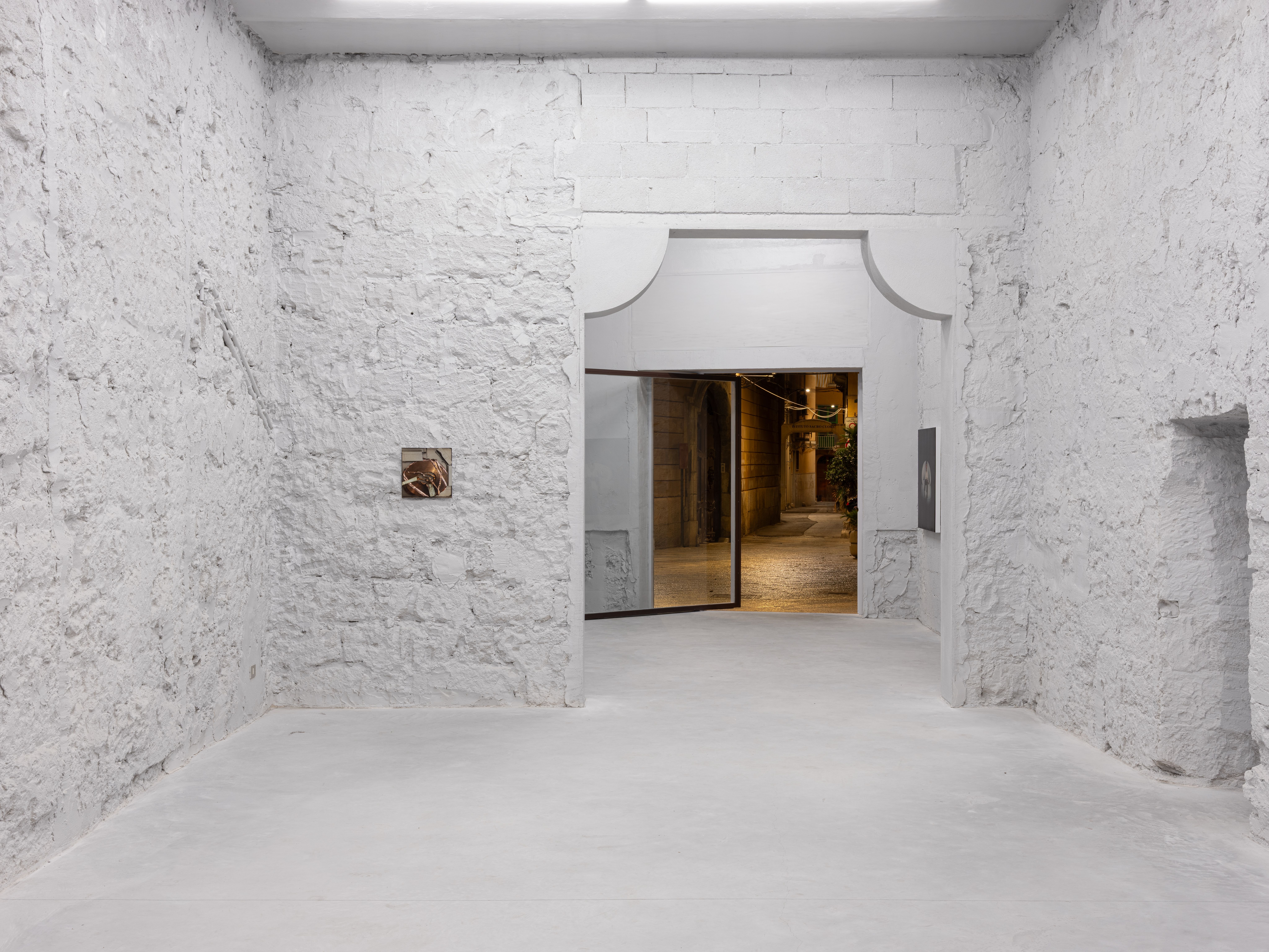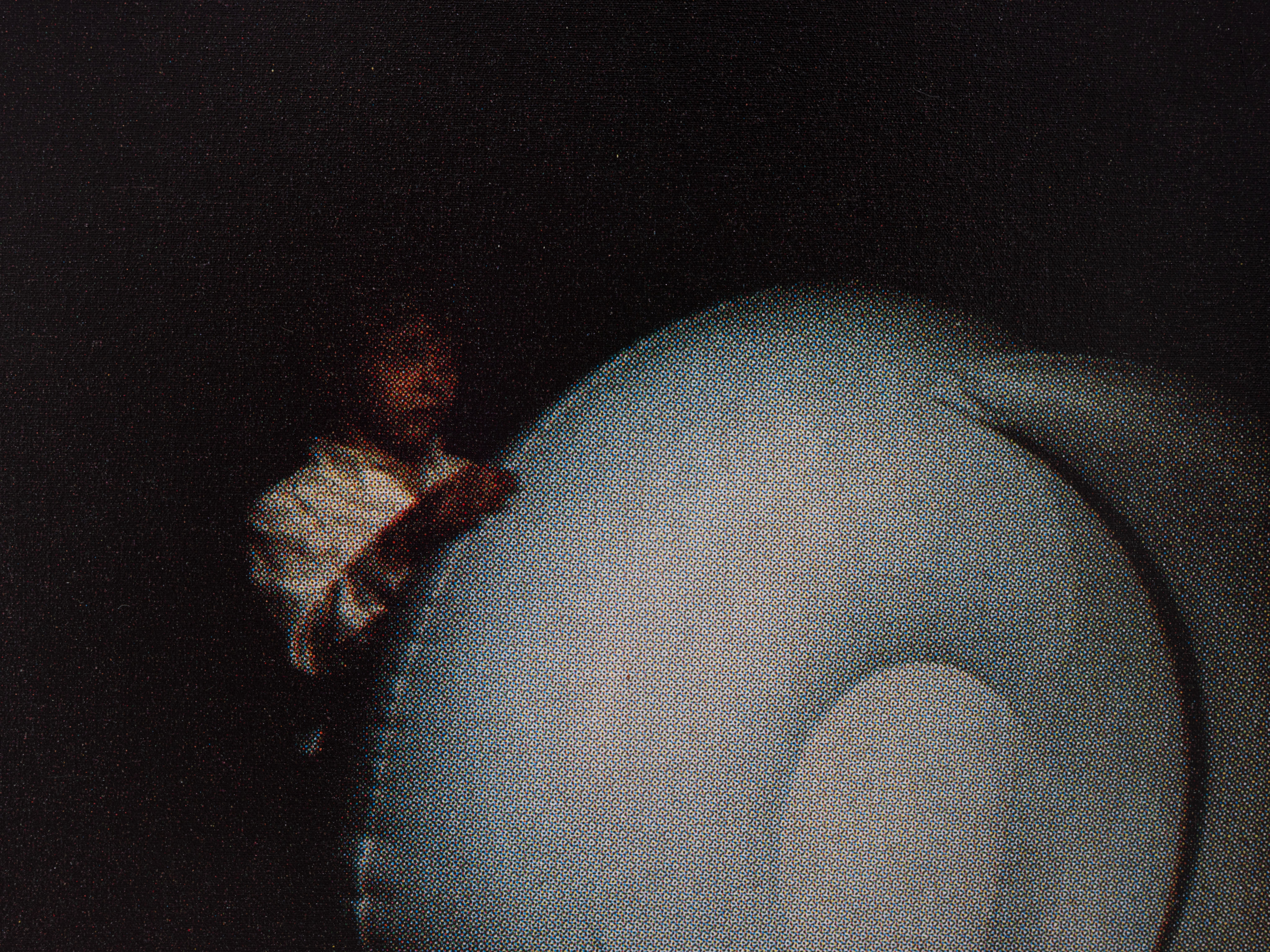 Distribuita in tutta la mostra, la serie recente di Cho, After Giorgio Casali I-II-III (tutte 2025), riproduce immagini del fotografo Giorgio Casali raffiguranti una poltrona gonfiabile disegnata da Bernard Quentin, originariamente pubblicate in un numero della rivista Domus negli anni Sessanta. L’artista ha ingrandito tre immagini fino a renderne visibile la grana, poi le ha stampate su lino e trattata con lacca – un sigillante utilizzato per proteggere le superfici. Applicata qui, solidifica un’immagine che era già apparsa nei media di carta stampata, reintegrandola nel mondo fisico. Nella sua pratica, la fotografia incontra altre forme – pittura, scultura, architettura e design – di cui l’artista rinnova l’uso in un presente distratto, dove le immagini alimentano lo sguardo della macchina fotografica.