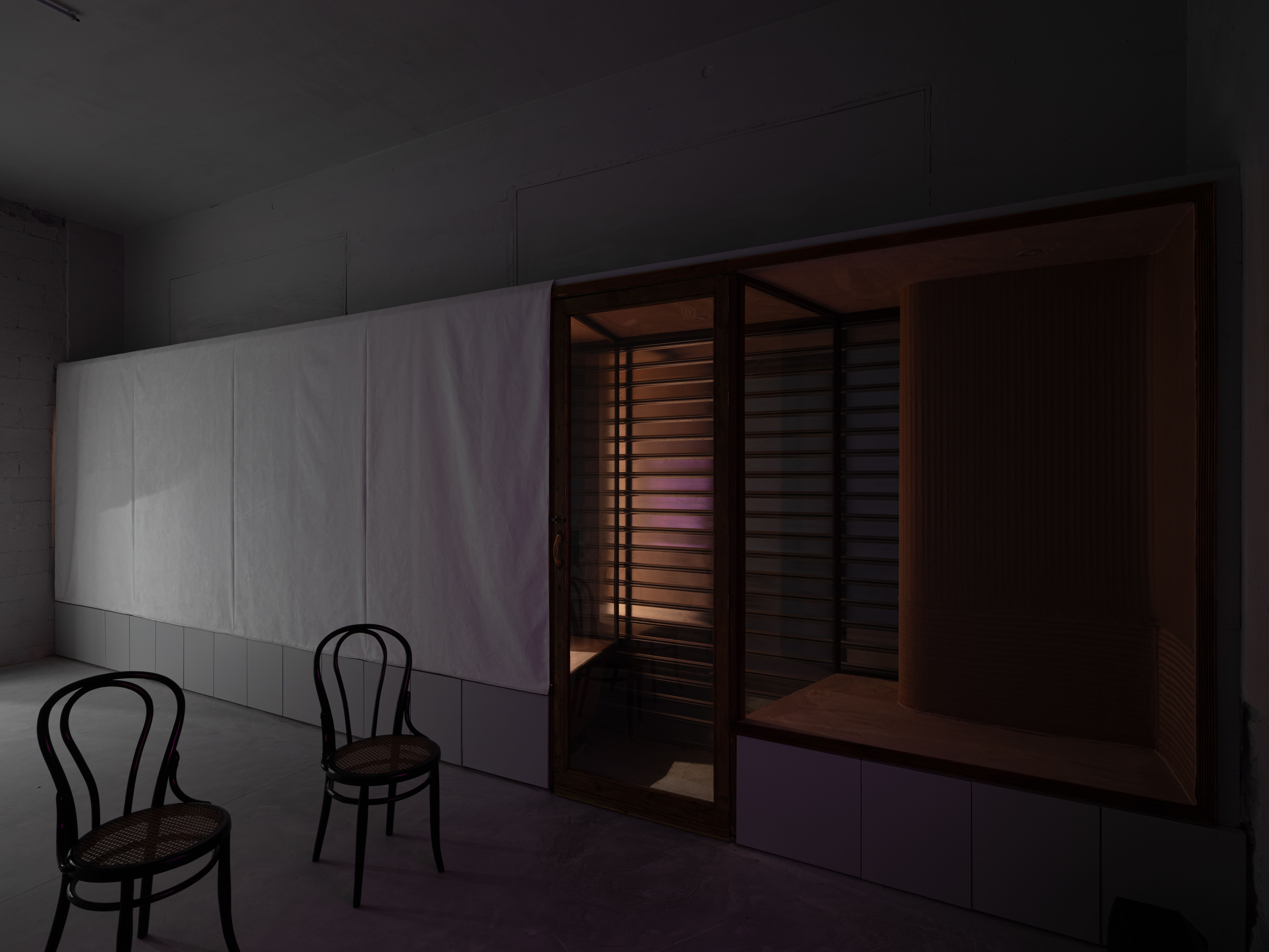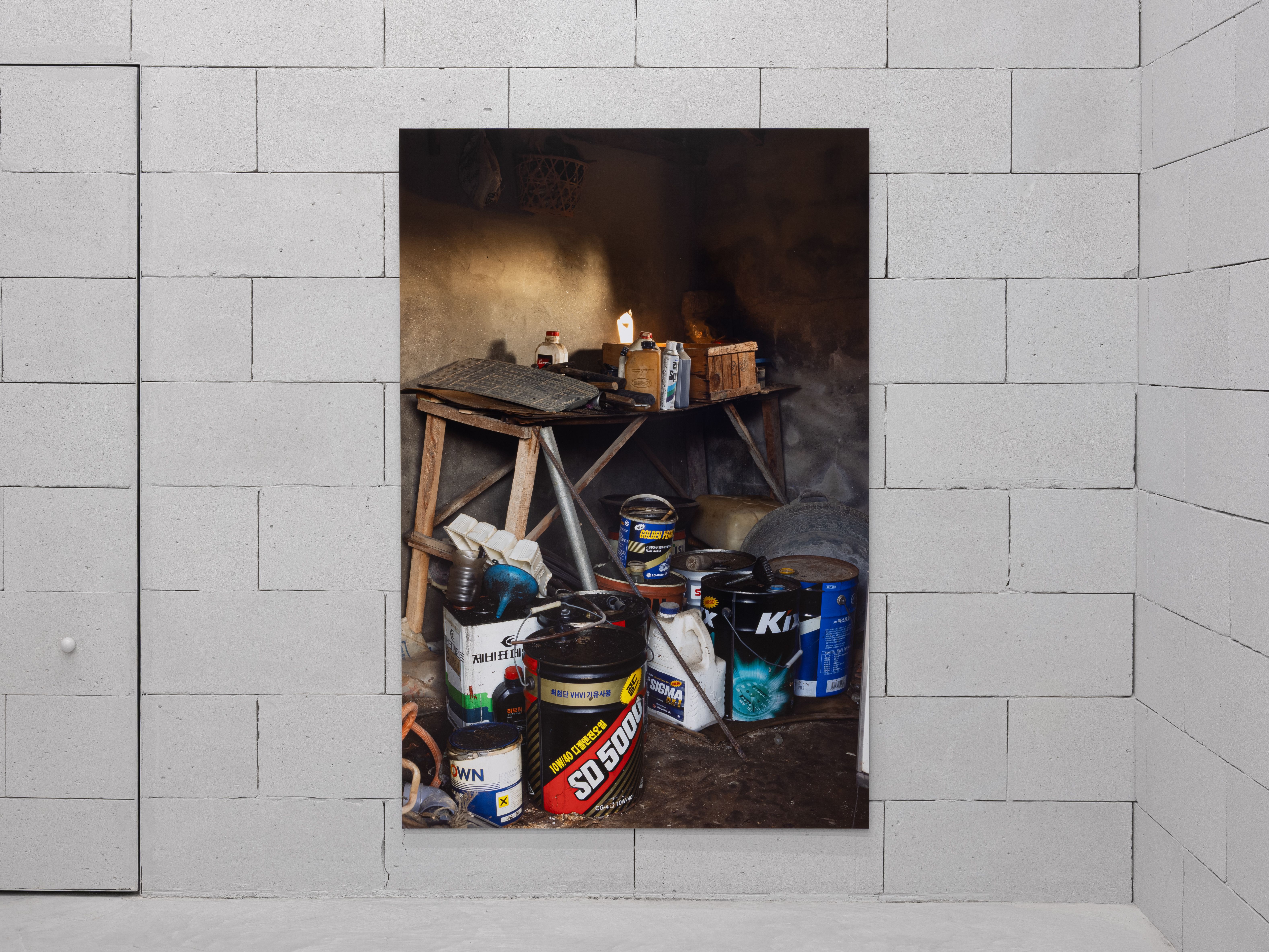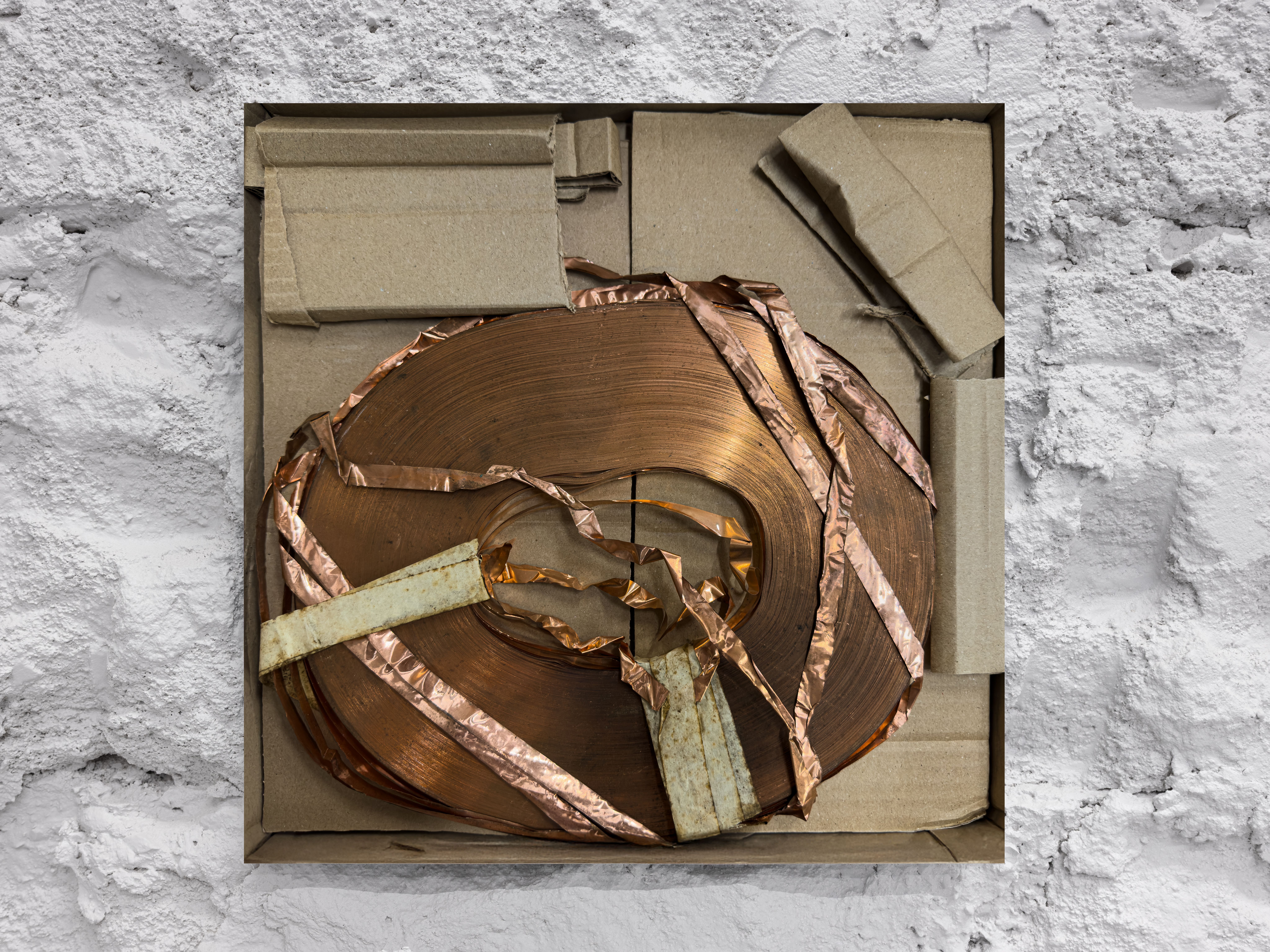 Wacho-Ri still life I (2025) è una fotografia del contenuto di un capanno degli attrezzi in Corea appartenuto al nonno defunto di Cho, usato per conservare lattine di olio motore per alimentare macchine per la raccolta del riso. La composizione della fotografia richiama una natura morta pittorica; qui, gli oggetti raffigurati simboleggiano come l’agricoltura industrializzata abbia sostituito le pratiche tradizionali che un tempo utilizzavano il Ki. A completare questo ciclo di lavori è Copper Reel (2025), una fotografia di una bobina di rame utilizzata da Cho come materia prima per realizzare le sue sculture, ripresa così com’era nel suo imballaggio di cartone. La forma della bobina di rame ricorda anche una pellicola cinematografica arrotolata, un’allusione alla celluloide e, forse, al cinema stesso.