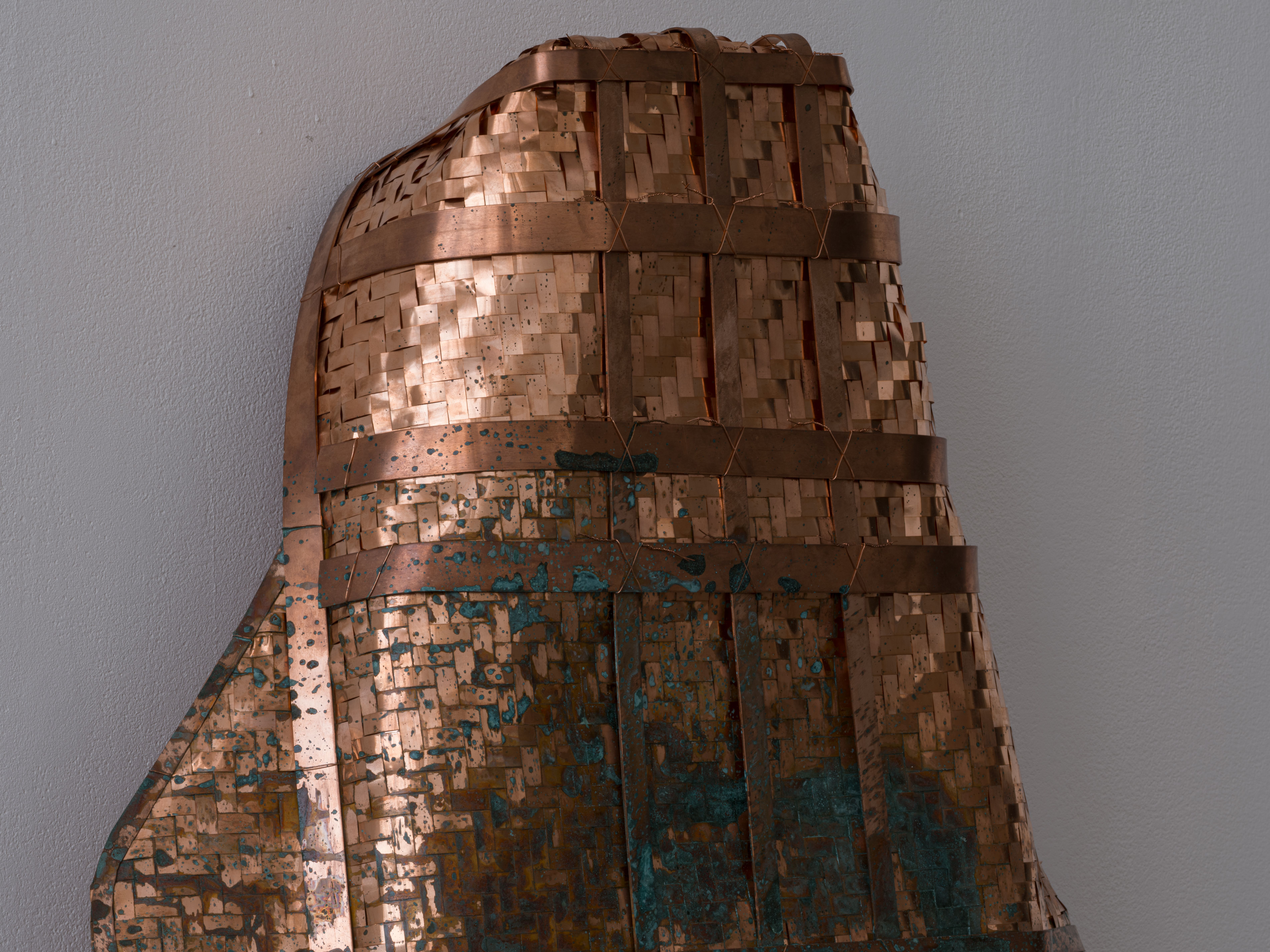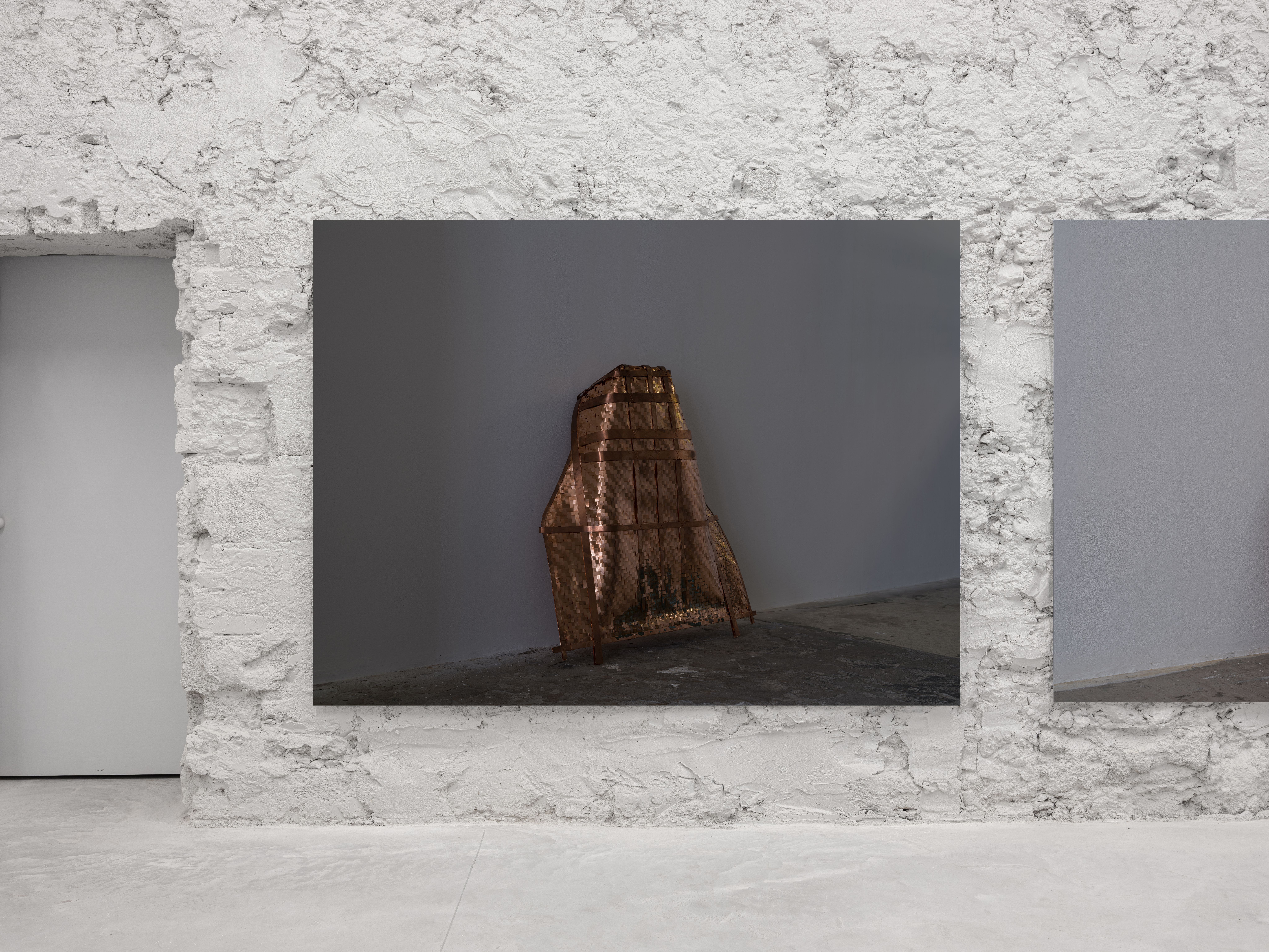 In mostra, oltre a La Borde, il lavoro fotografico di Cho mette in discussione l’affidabilità delle immagini oggi e come il loro status cambi nel momento in cui circolano pubblicamente attraverso diverse piattaforme. Alcune fotografie in mostra ruotano attorno a due sculture recenti dell’artista, riproduzioni di un setaccio coreano, e tracciano l’origine, la realizzazione e la successiva documentazione di queste opere. Le sculture si basano su un Ki, uno strumento tradizionale per la raccolta del riso realizzato in bambù, che l’artista ha ricostruito in rame. Il Ki era anche un oggetto di mortificazione: come punizione, i bambini che facevano la pipì a letto, erano costretti ad indossarlo in pubblico. Dopo aver realizzato le sculture, l’artista vi ha urinato sopra – l’urina ossida il rame – in un gesto che potrebbe essere interpretato come un rifiuto dell’imbarazzo infantile.